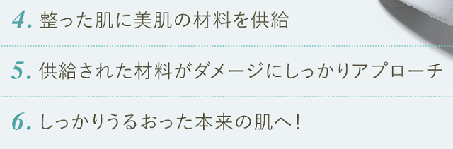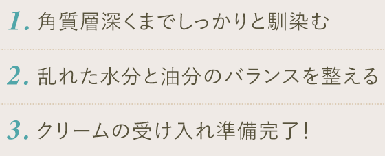 まずは、オイルでしっかりと肌の状態を整え、そしてクリームで肌の修復を行う。